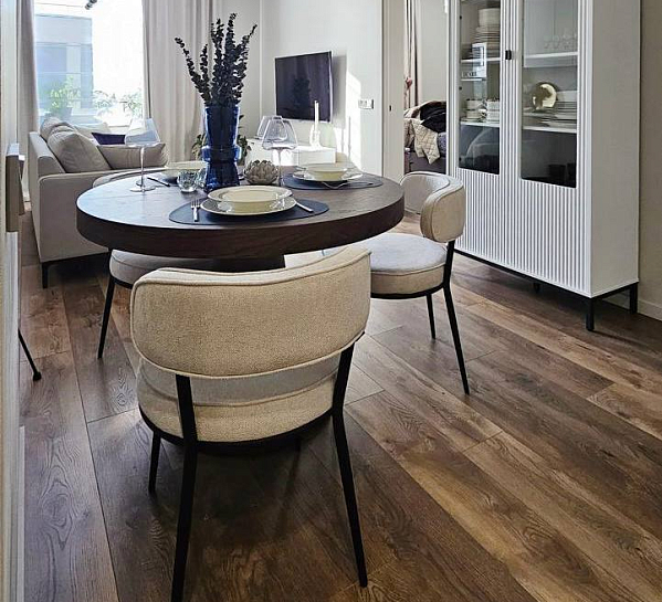 ◻️ Наличие слоя натурального шпона дерева толщиной 0,6 мм делает пол неотличимым от настоящего паркета, а устойчивость поверхности к выгоранию и механическим повреждениям обеспечивают 7 слоев UV-лака.