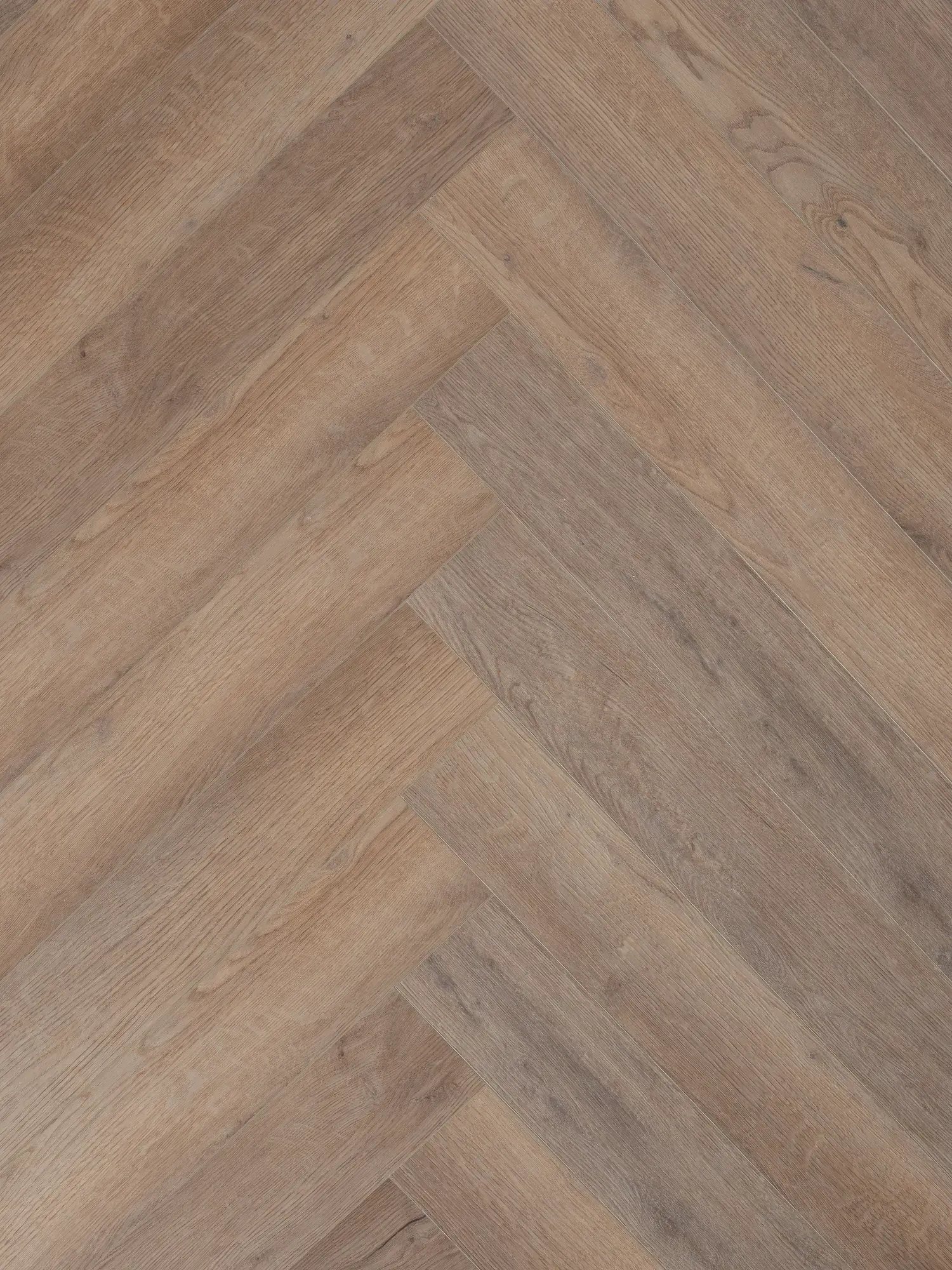 Синхронный рельеф совпадает с рисунком декора — поверхность неотличима от натурального паркета